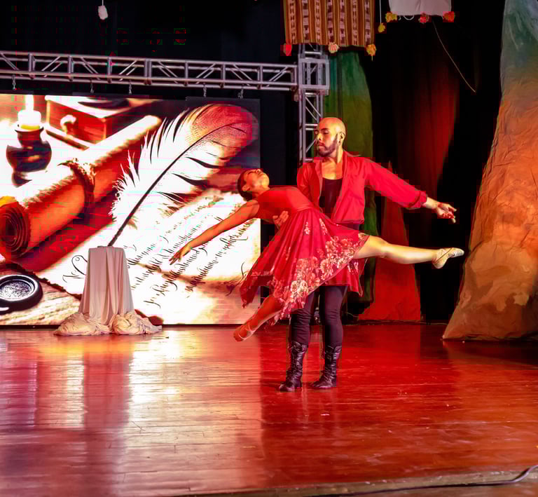 La obra reúne a bailarines en proceso de formación y artistas escénicos en una puesta en escena que integra técnica académica, narrativa coreográfica y construcción escénica cuidada en cada detalle.